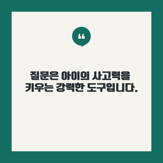 "세상에 사소한 질문은 없다"는 말처럼, 모든 질문은 아이를 사랑하는 마음에서 나옵니다. 부모가 던지는 작은 질문 하나가 아이의 생각을 크게 확장시킬 수 있습니다.