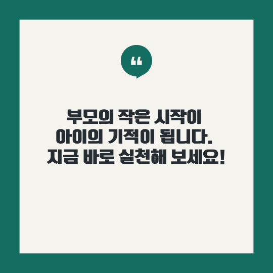 지금 당장 실천해 보세요. 부모의 작은 시작이 아이에게는 큰 기적이 될 수 있습니다.