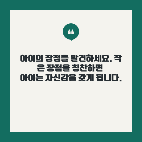 아이의 자존감을 높이기 위해서는 아이의 삶에서 믿을 만한 근거를 발견하는 것이 중요합니다. 부모가 아이의 작은 장점과 노력을 인정하고 믿는다면, 아이는 더욱 자신감을 갖고 성장할 수 있습니다.
